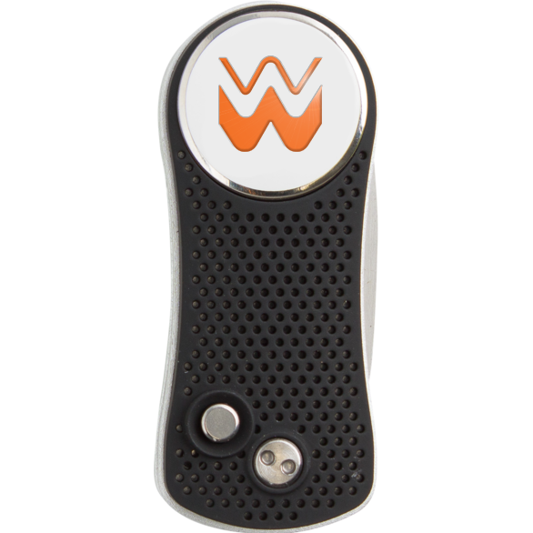 Switchblade function with non-slip silicon and stainless steel prongs. Removable ball marker that features our brand.